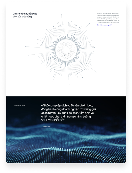 eNAO là công ty công nghệ hàng đầu Việt Nam trong lĩnh vực Big Data và Kiến trúc Hệ thống. Với lợi thế về việc thấu hiểu thực trạng và nhu cầu của khách hàng local, eNAO nhanh chóng có tên trong danh sách những nhà thầu dự án công nghệ lớn nhất của Việt Nam.